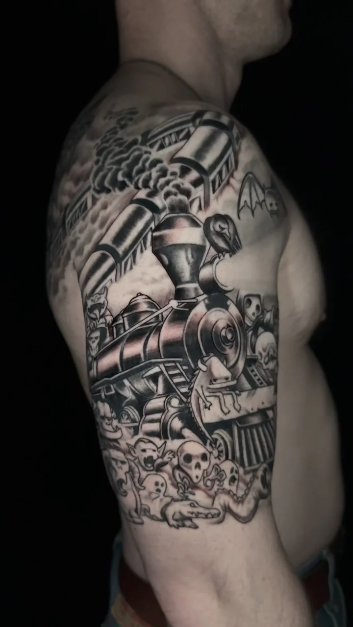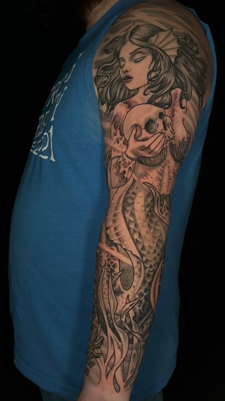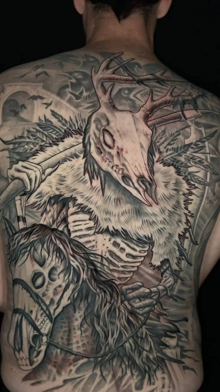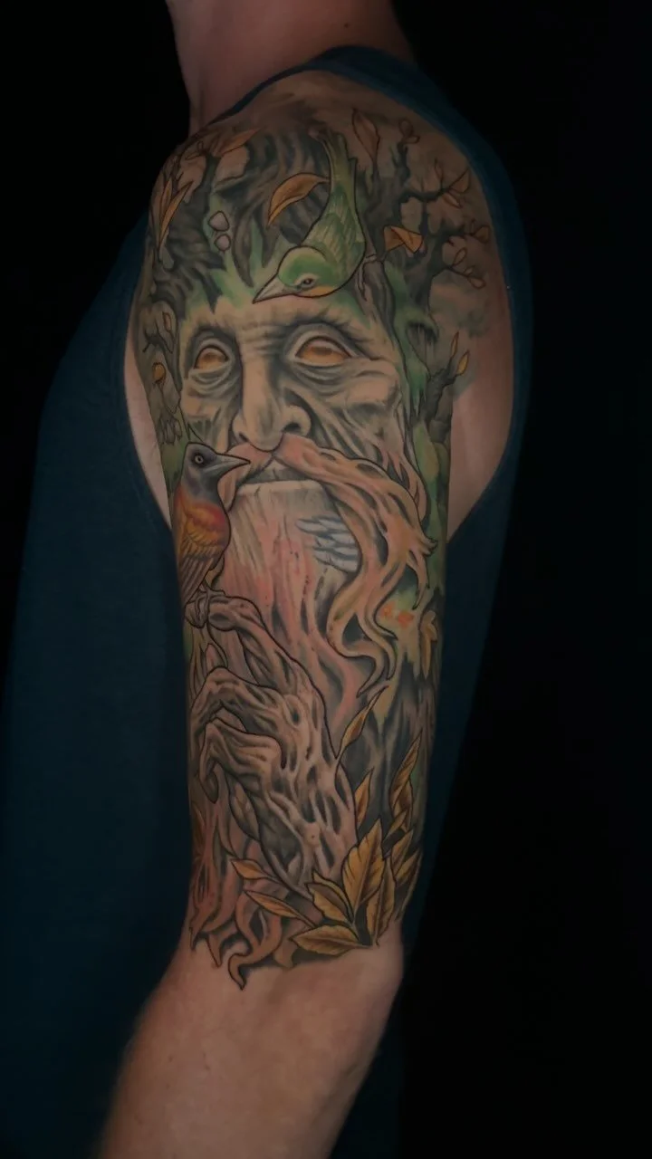 With over 20 years of experience, Daniel creates illustrative tattoos that range from surreal to boldly exaggerated. Best known for his large-scale sleeves and back pieces, he also enjoys smaller and midsize projects. His work spans organic, nature-inspired subjects to darker, spookier themes, often featuring skulls, birds, plants, animals, sea life, and mythical creatures. Skilled in both black and grey and full color, with a strong focus on detail and texture, he continues to refine his craft, creating tattoos that even non-enthusiasts can appreciate.
