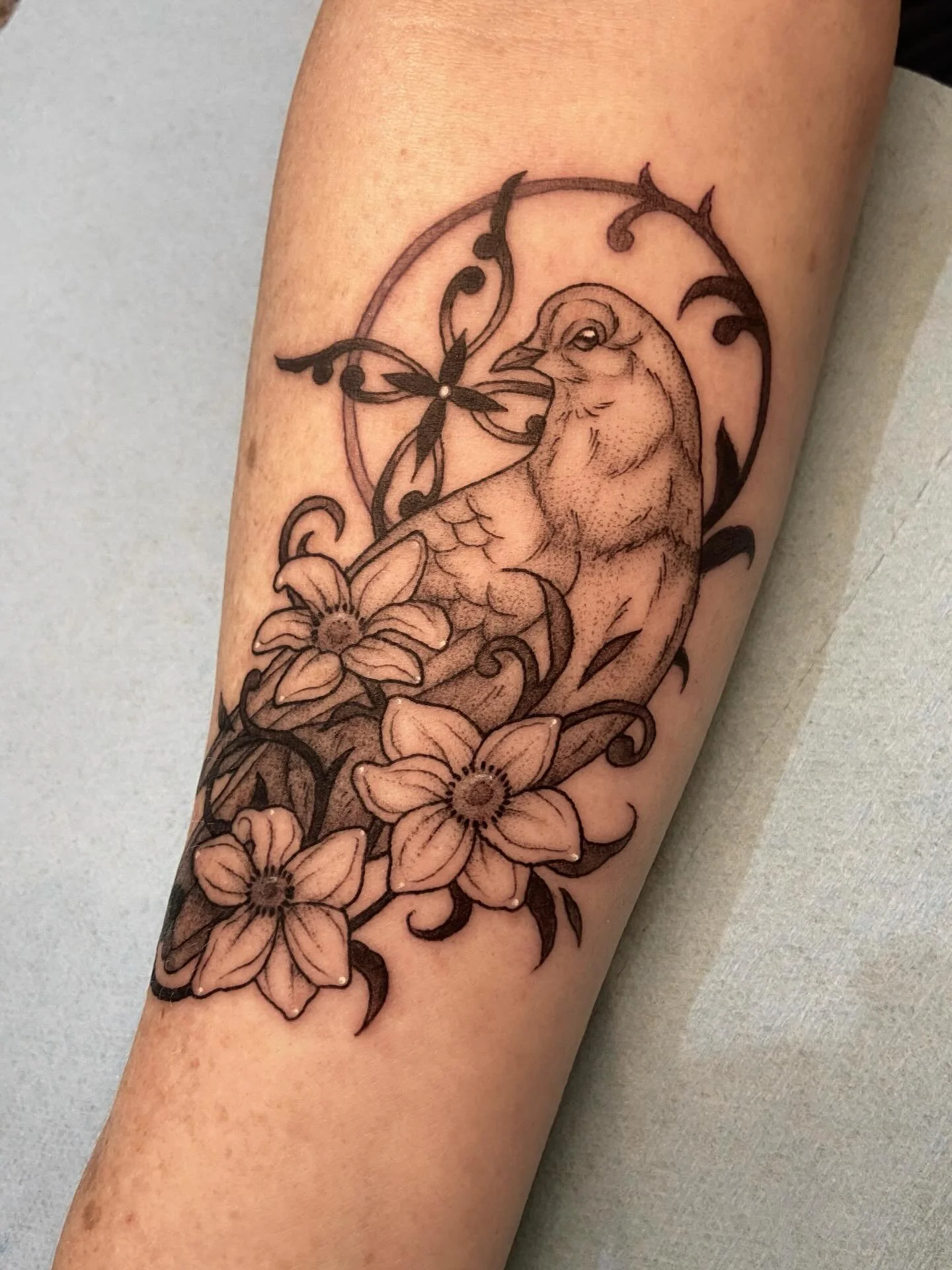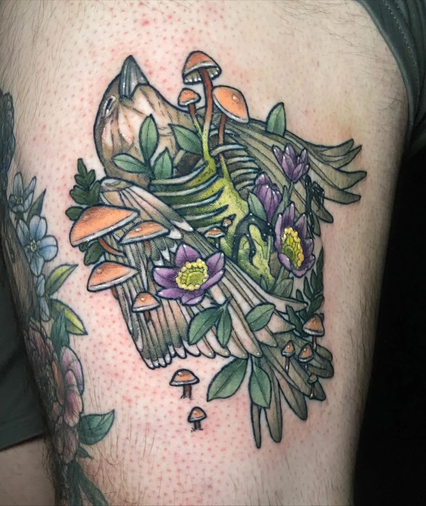 Dawn enjoys tattooing botanicals, animals, insects, skulls or anything having to do with the natural world. She takes particular interest in scientific, witchy, occult or fantasy related imagery. Her art style walks the line between neo-traditional and scientific illustration, with subtle shifts in color and organic subject matter.